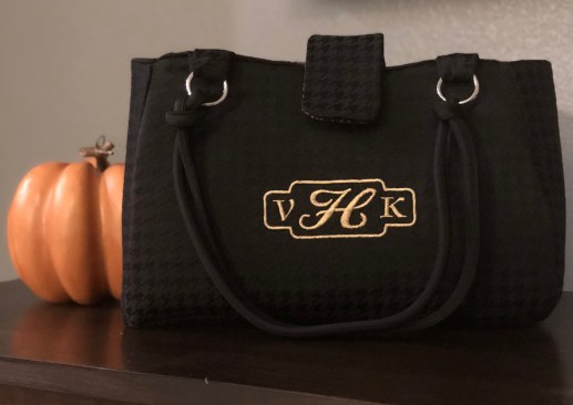 The fabric is from stash. The front piece of my purse was embroidered. The size of the purse was scaled down and I used a foam stabilizer. The foam stabilizer is great for providing shape to the purse. When sewing with the stabilizer, it will get bulky so it challenging to keep the fabric and the stabilizer under the needle.