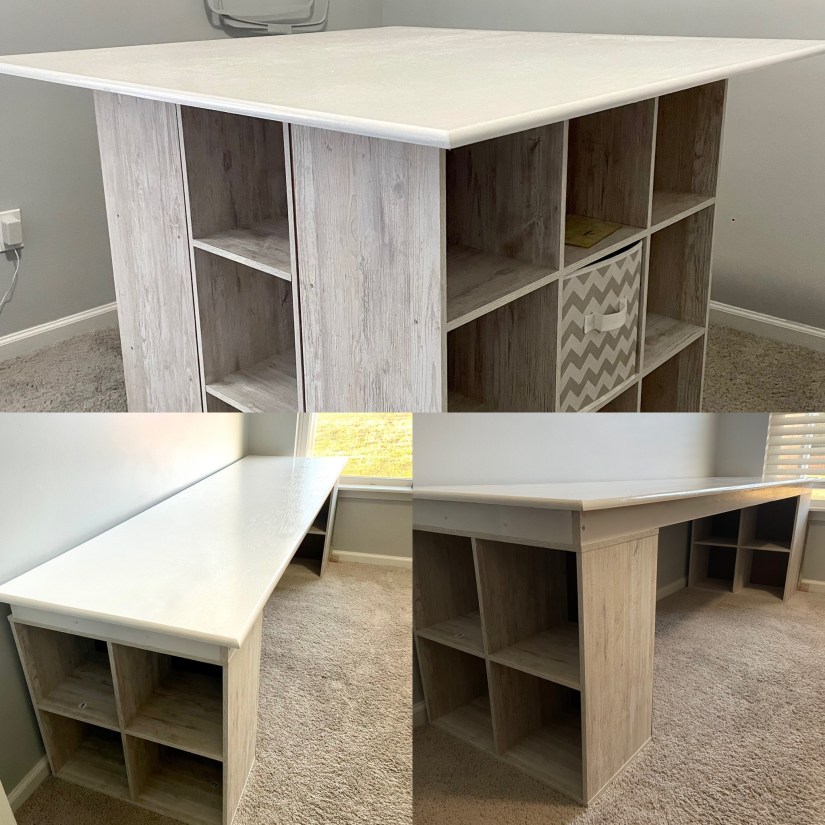 For Christmas, I asked to have a cutting table and a sewing table. My current cutting table was a fold out table, and I also had a small sewing desk that was made for only for one machine but was holding two. After reviewing the costs of pre-made sewing tables and cutting tables, I quickly realized, they were outside of my budget, but Pinterest had some creative ideas of making your own cutting table. We measured my sewing room and made some changes that would work for my sewing room.