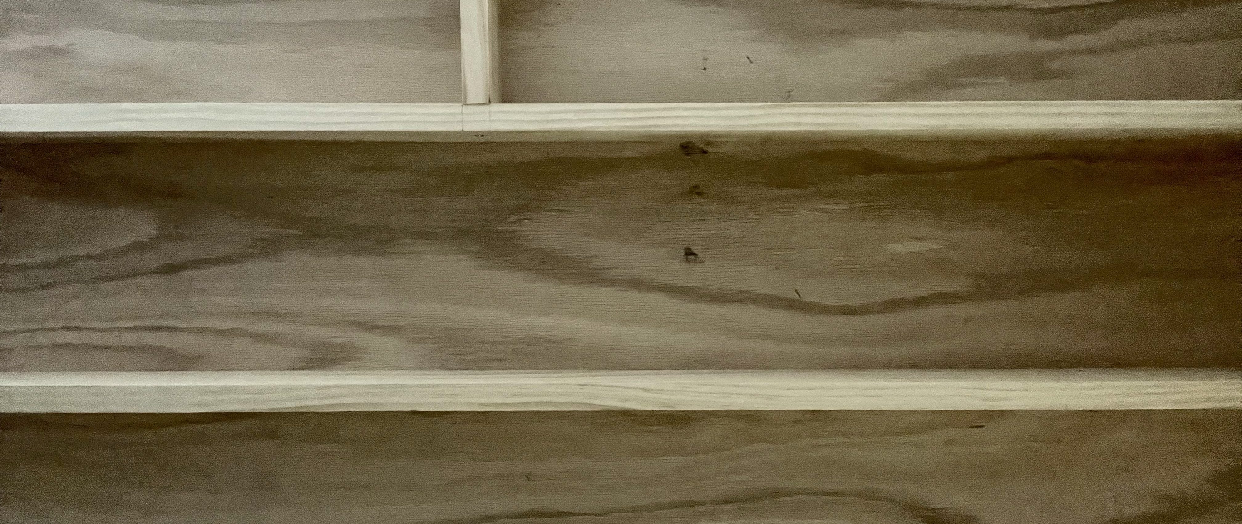 The bookshelves needed to be stable, so a hardboard was added to the back of the bookshelves and nailed in. Corner brackets were used on the top and bottom to secure the bookshelves together for cutting table.