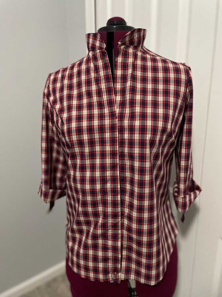 You probably are thinking, if you like the fabric and the pattern was easy, what is the hold up? The hold up has been the excitement of other projects and the buttons. This is the last step on this blouse, everything else is done. I guess that I am suffering from the “fear of messing up”. As I have previously posted, mistakes do happen, and I have to remind myself this is actually a learning experience not a setback.