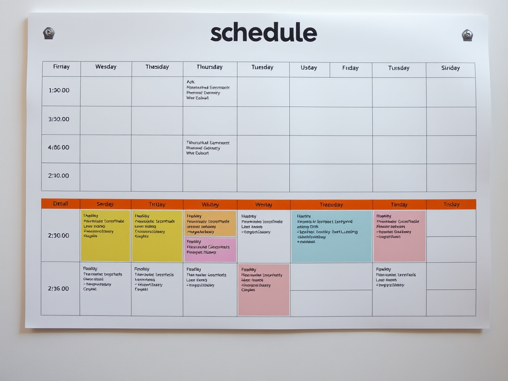 Next, I set up a basic schedule for the week. This schedule can be modified each week depending on the events occurring in my life. This schedule will help give me a rhythm for my day. It will also help me to stay focused on my goals.