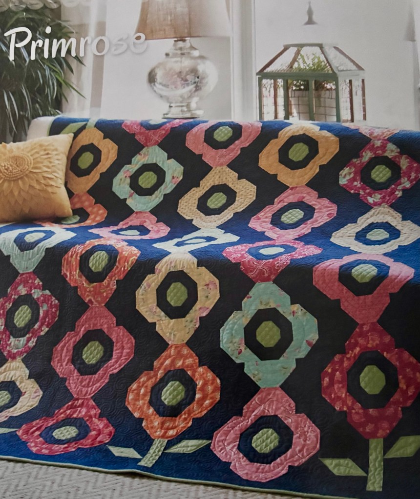 This week I have been cutting the fabric for the Primrose quilt. Here is the picture of the quilt from the book Fat Quarter Style.